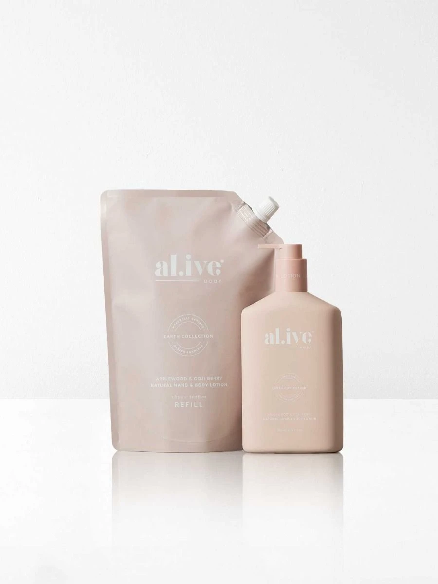The Al.ive 1 litre refill pouches are designed to refill your existing al.ive body bottles whilst helping to reduce the amount of plastic ending up in landfill. Our refill pouches use 88% less plastic and refill your 500ml al.ive body bottle twice. Our pouches are 100% recyclable, just peel off the sticker from the front and back of the pouch and dispose in your recycling bin at home.