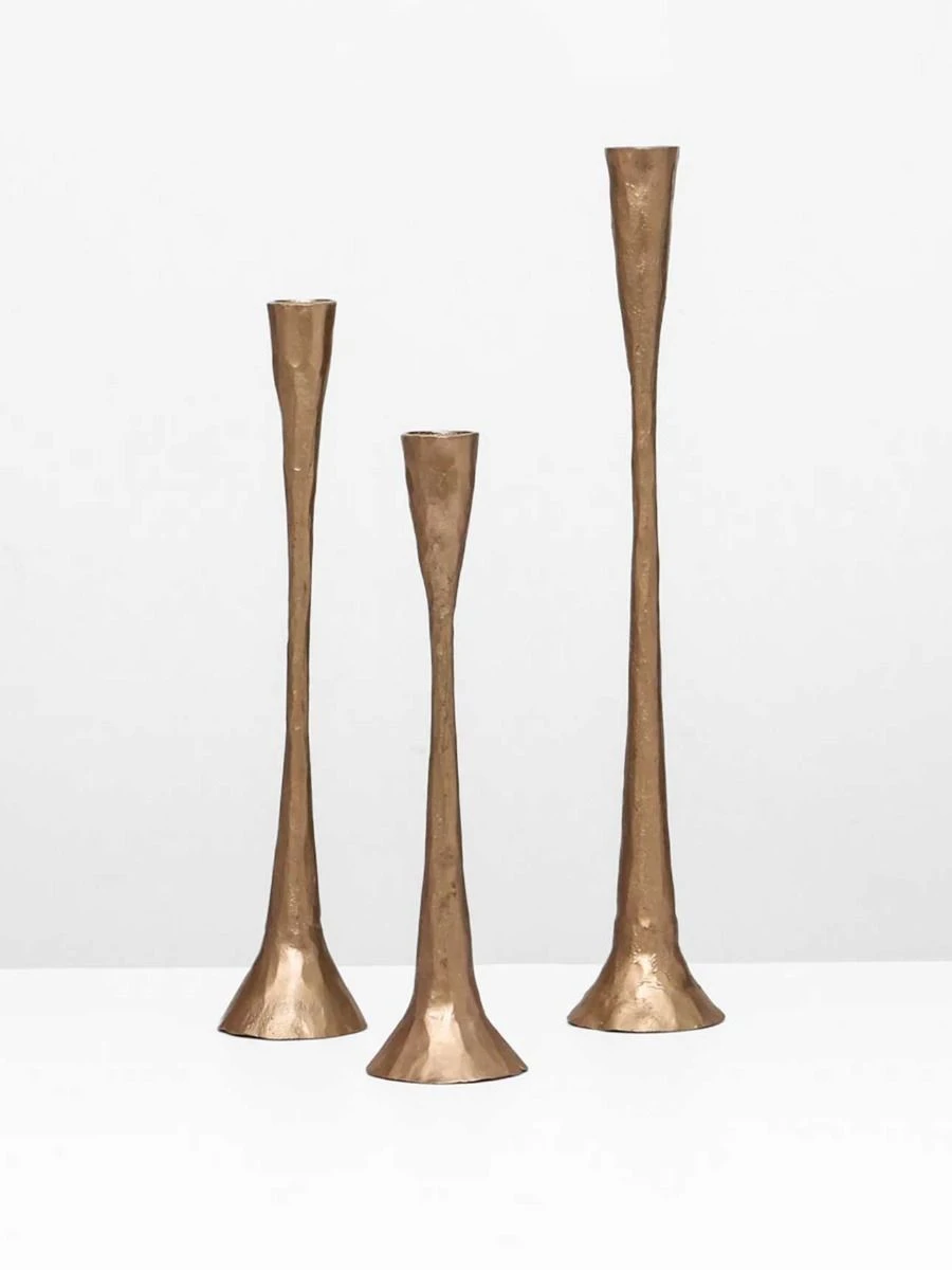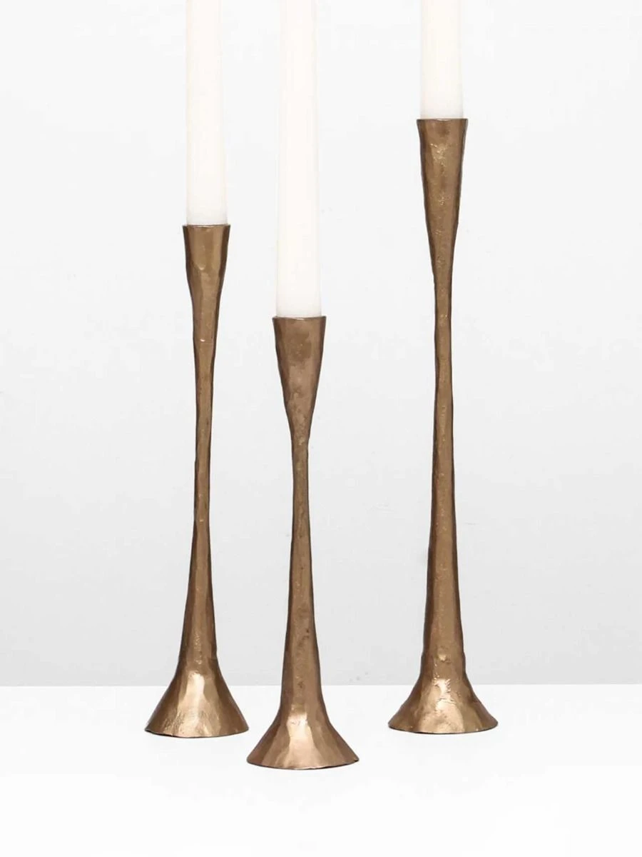 Add warmth to any room with the tall Artisan Candlestand. Each Artisan candlestand is individually hand crafted, ensuring a unique piece. Made from iron and coated with an Antique Brass finish. This gives the candlestand a sophisticated appearance that is fitting for any room. Not only are these candlestands aesthetically appealing, the Artisan candlestands are also durable, making them a perfect investment for any home.