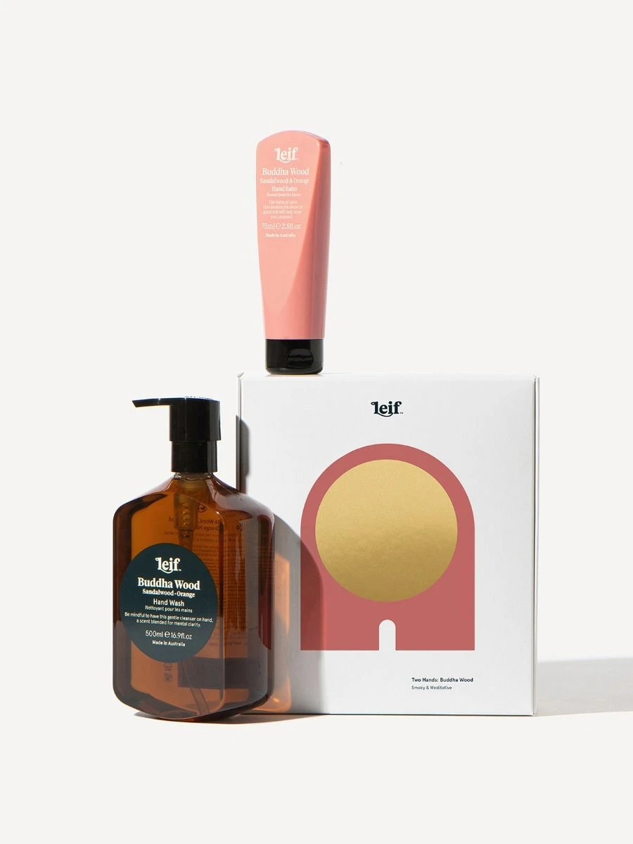 Two partner products come together to make the ideal gift. Set contains: 1 x Buddha Wood Hand Wash 500ml & 1 x Buddha Wood Hand Balm 75ml, beautifully presented in a Leif gift box.