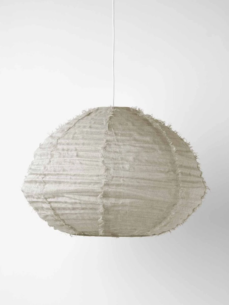 Our Cloud Fringed Linen Oval Pendant in Dove is a beautiful and unique addition to any home. Hand-crafted in elegant European Flax® certified pure linen, an eco-friendly traceable fibre.