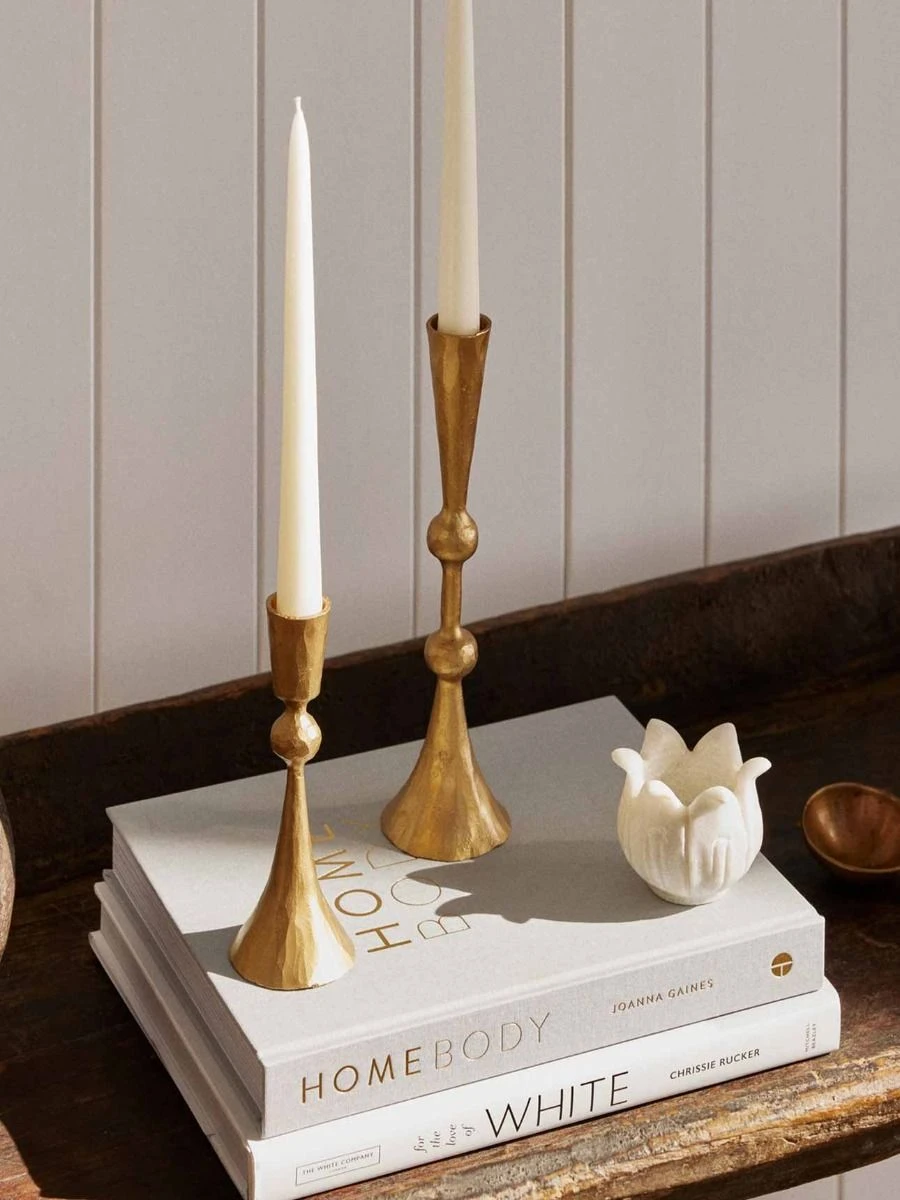 Available in two sizes – the Enchantress Candle Stand offers versatility in styling. Create a captivating vingette by displaying both sizes together atop a sideboard or dining table, or let each candle stand shine individually in different rooms, setting an enchanting ambiance throughout your home.