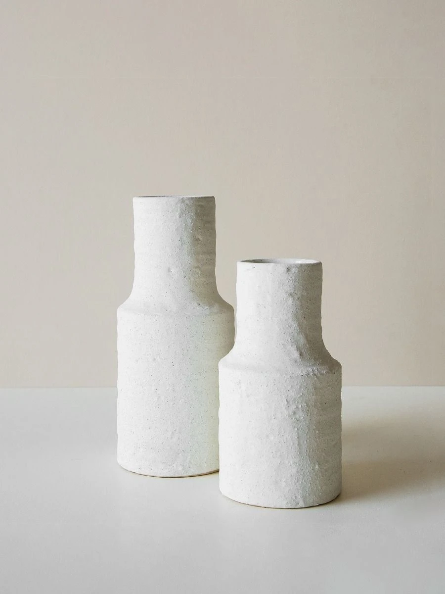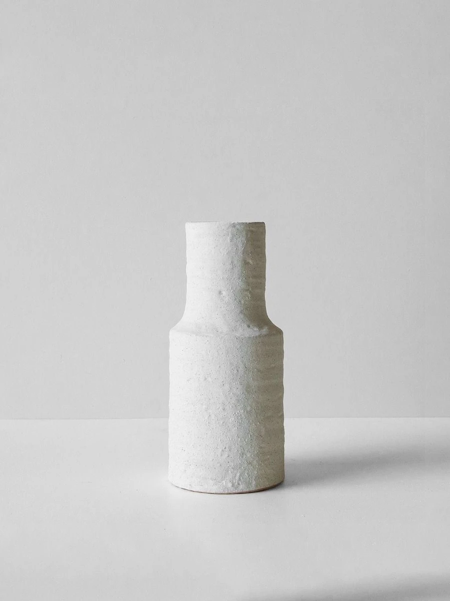 Fusing beautiful, raw finishes with timeless mid-century form, our range of Eva vases have been handcrafted from the highest quality earthenware. With a classic shape, almost reminiscent of a vintage milk bottle, the Eva has just the right amount of texture that is the perfect blend of raw and refined. Perfectly paired with dried florals like bunny tail grass and baby’s breath, or with fresh sprays of eucalyptus leaves.