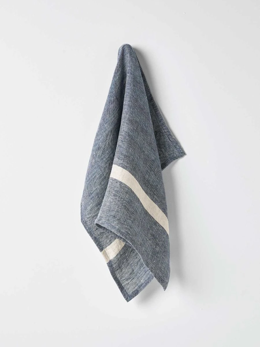 Our Herringbone Tea Towel in Indigo feature timeless modern stripes and have been woven in pure linen using natural, hand-woven linen fibres. Vintage washed for an authentic heritage look and feel, celebrating contemporary country and city living. As well as being rich in character and texture, linen is also an eco-friendly and bio-degradable fibre that does not require irrigation to grow. Our linen is a hand made product, from dying, drying naturally in the sun, to finally being hand loomed by local artisans in one local community. All of our dyes used are natural and all by-products used in dying, including water and fabric offcuts are recycled and reused.