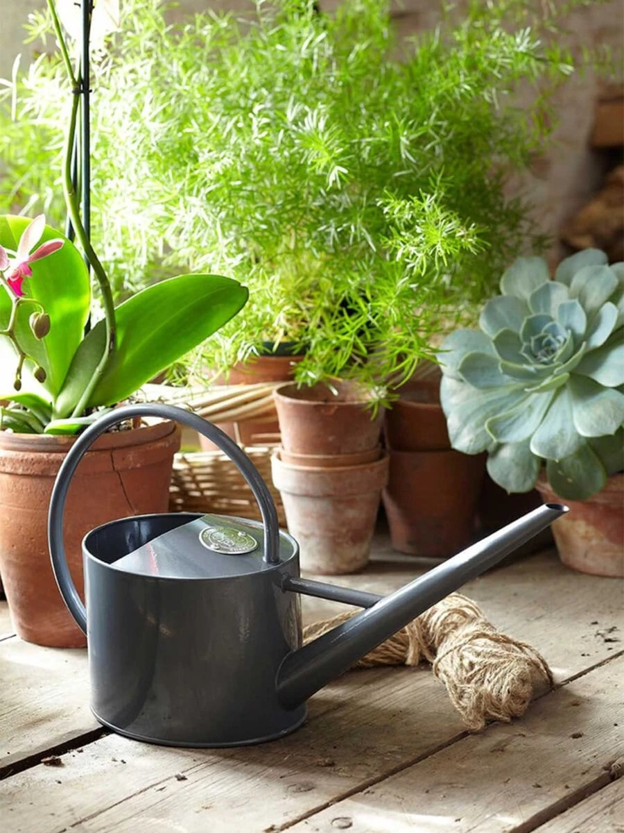 Crafted from powder coated galvanized steel the indoor watering can offers a comfortable tubular handle with a narrow angled spout for precision watering, holding up to 1.7 litres.