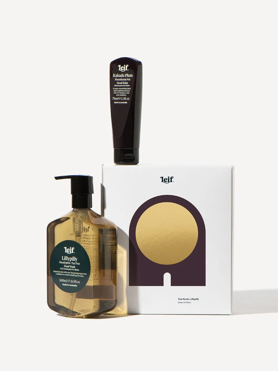 Two partner products come together to make the ideal gift. Each set contains: 1 x Lillypilly Hand Wash, 500ml & 1 x Kakadu Plum Hand Balm, 75ml, beautifully presented in a Leif gift box.