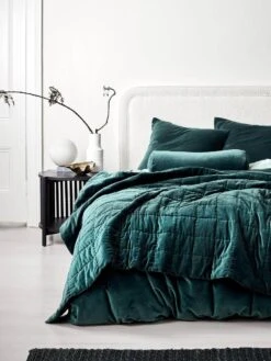 Imbued with a softness that must be felt to be believed, our Luxury Velvet Coverlet in Indian Teal is made to be sunk into. Effortlessly graceful, its muted, flowing contours take elegant comfort to a whole new level. Artfully constructed from the highest-calibre pure cotton velvet, get lost in its powdery embrace, the closest thing to wrapping yourself up in a cloud.