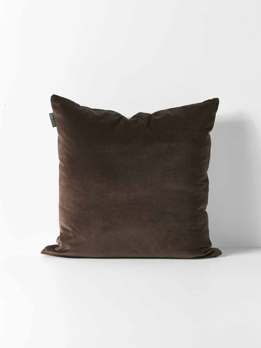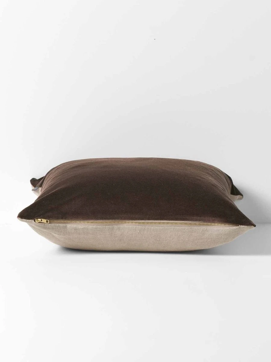 Pure Cotton Velvet reversing to Pure Linen. Our Velvet Cushion in Chocolate has been woven in a luxurious pure cotton velvet, finished with our signature gold zipper.