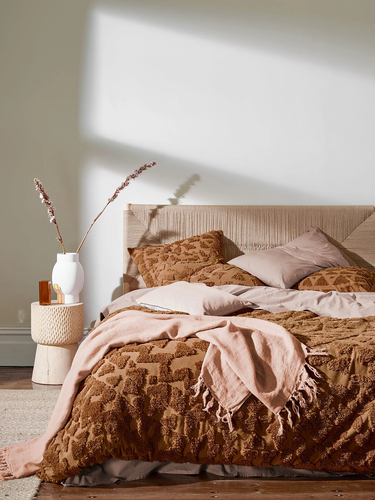 The patterned cotton texture of our Maya Quilt Cover draws inspiration from both the old and the new. In a stunning Caramel, it celebrates a marriage of contemporary living and artisan workmanship, a classic reborn for a new generation. Made from Pure Cotton for a sumptuous hand-feel, it comes packaged in a reusable bag that has been made using the same fabric as the bedlinen.