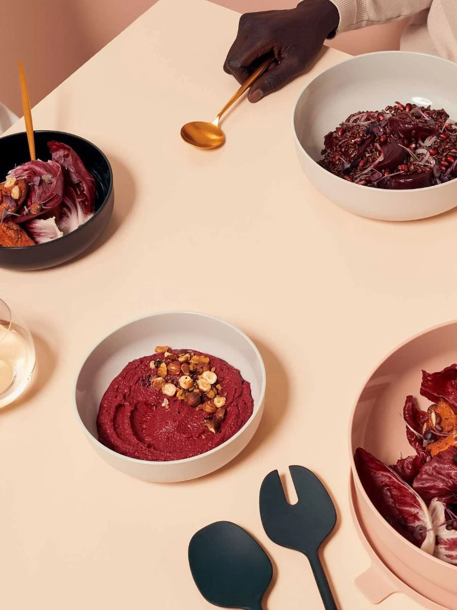 The Styleware Nesting Bowls Collection were designed to be the anti-ugh, to work hard while looking gorgeous. Made of a premium, light weight material, they’re snap-tight, safe for fridges, freezers, microwaves, dishwashers, and clumsy hands. Their softly curving shape, matte exterior, glossy interior, and blushed hues make them downright sexy. These are bowls that make tables look better simply by sitting on them.