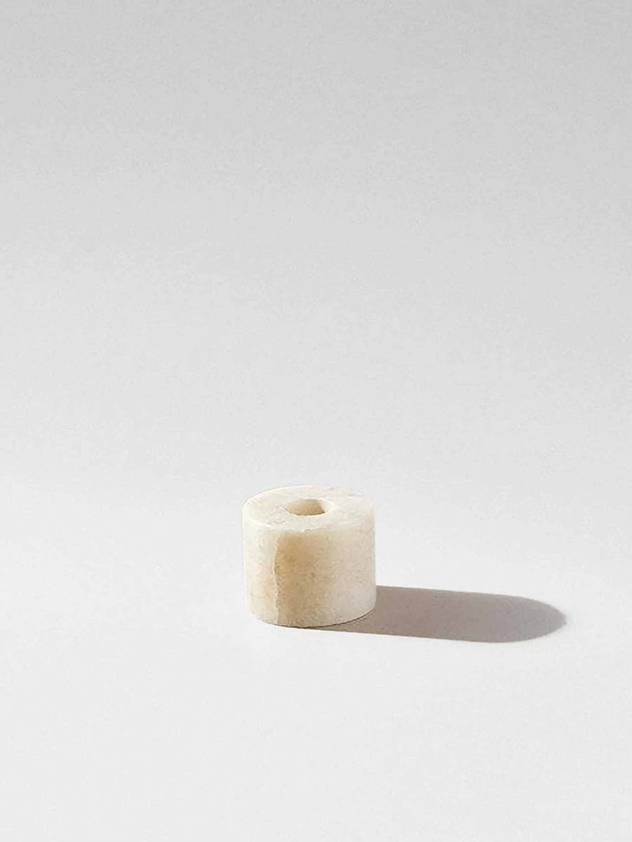 Crafted from solid onyx marble, this Onyx Marble Candlestand is a textural delight with varying shades and veins flowing throughout. The minimal and simple design of this candlestand with its round cylindrical shape ensures that it will fit right into any aesthetic. Its ideal size makes it perfect for holding taper candles, bringing subtle ambiance to any room in your home.