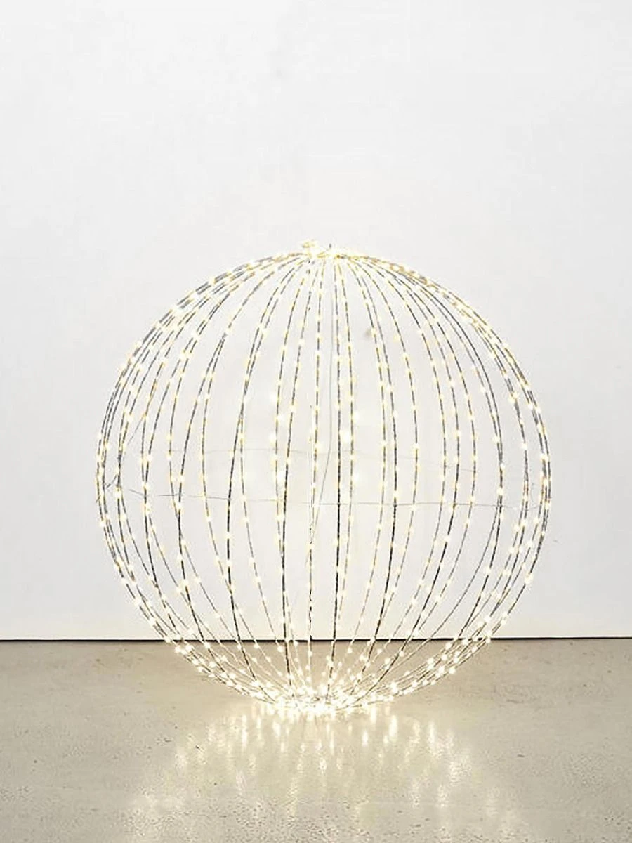 Decorate your home & garden with this stunning Large LED Metal Sphere Christmas Decoration. Made from a simple metal frame, the foldable spheres can be hung, used as table decorations or against a wall in a semi-circle. The LED Sphere is the perfect statement piece all year round, to lighting up the corners in any room. Warm white LED lighting creates the perfect atmosphere for any event throughout the year – not just the festive season.