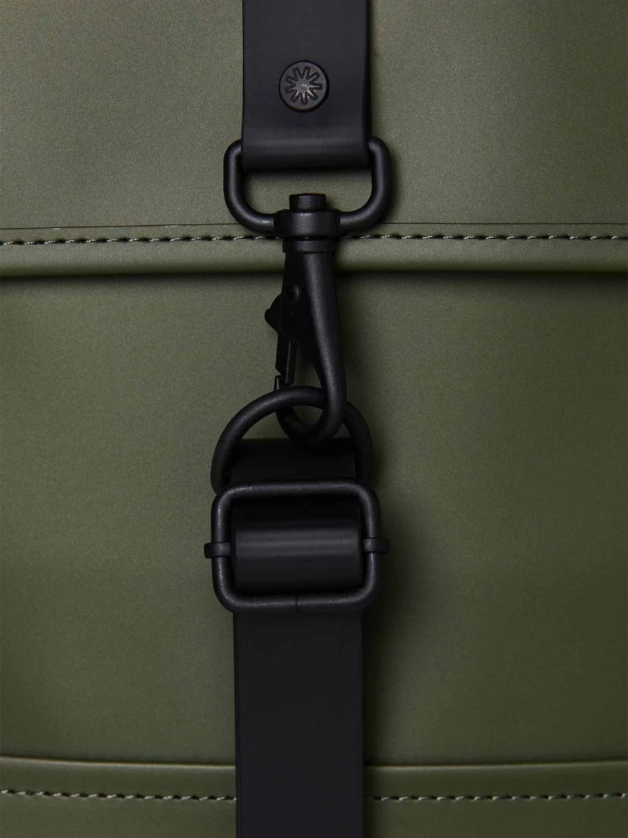 Backpack Mini is cut in Rains’ signature waterproof PU fabric, engineered for carrying strength, durability, and a smooth feel.