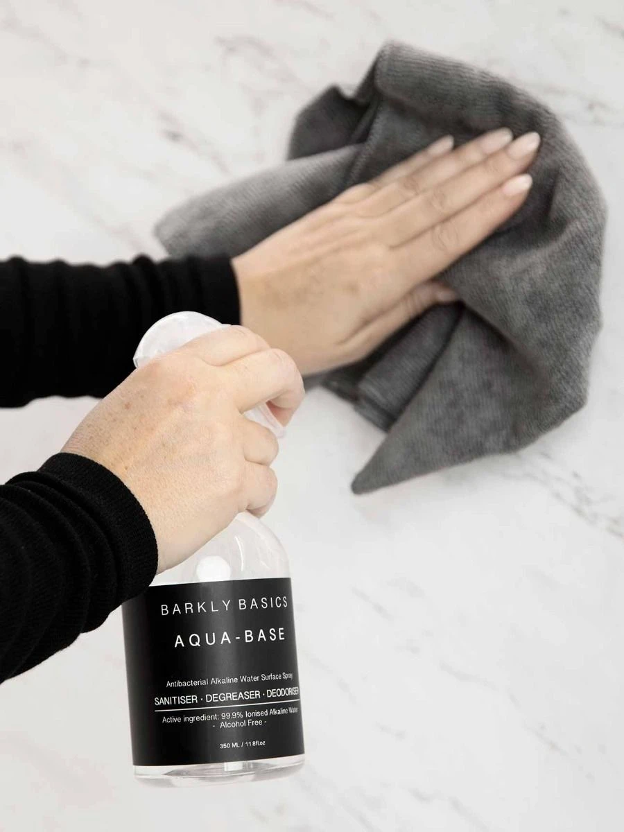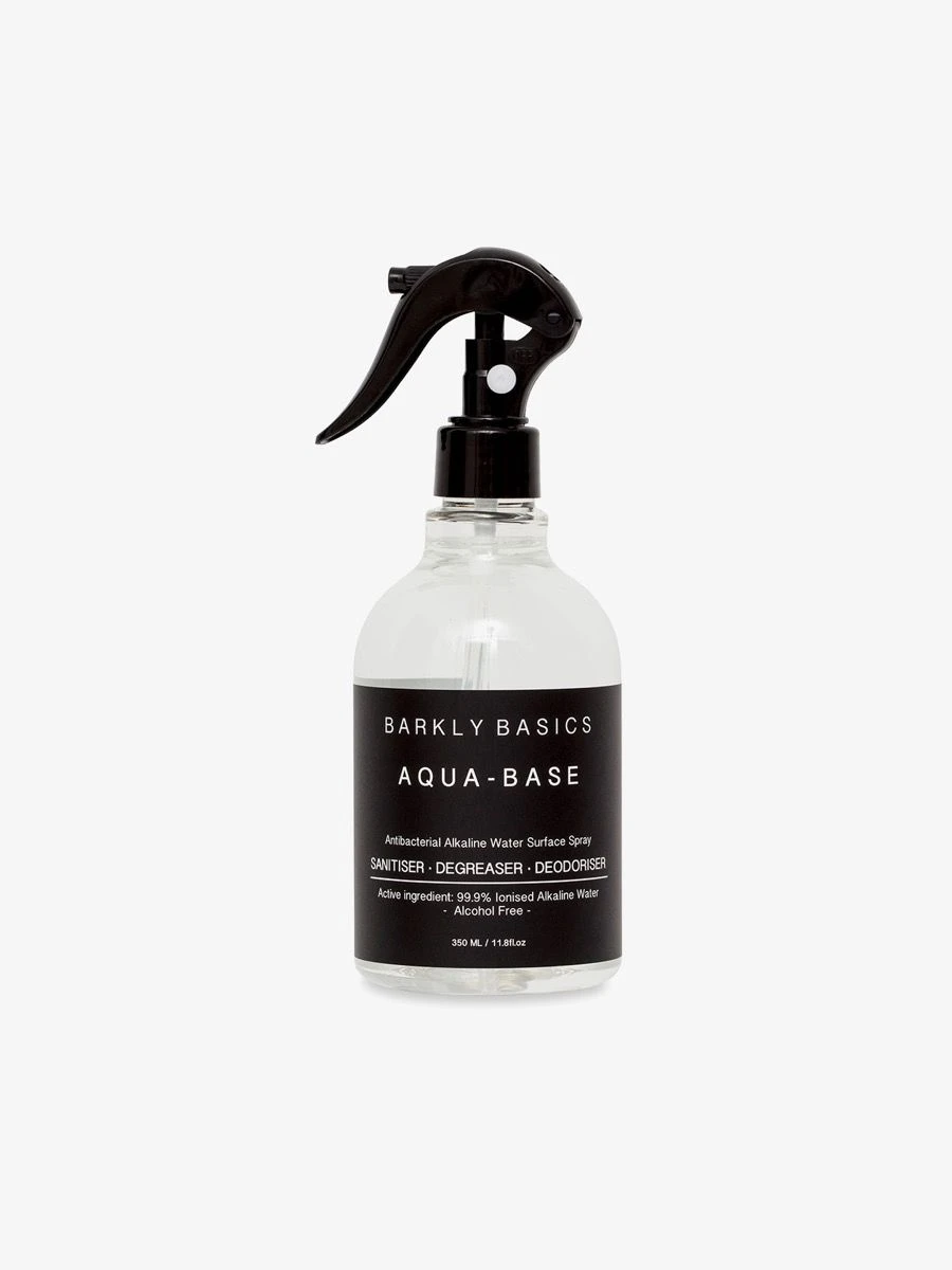 AQUA-BASE is a natural water-basedsurface spray & sanitiser that is made from alkaline reduced water by a process called electrolysis.Â