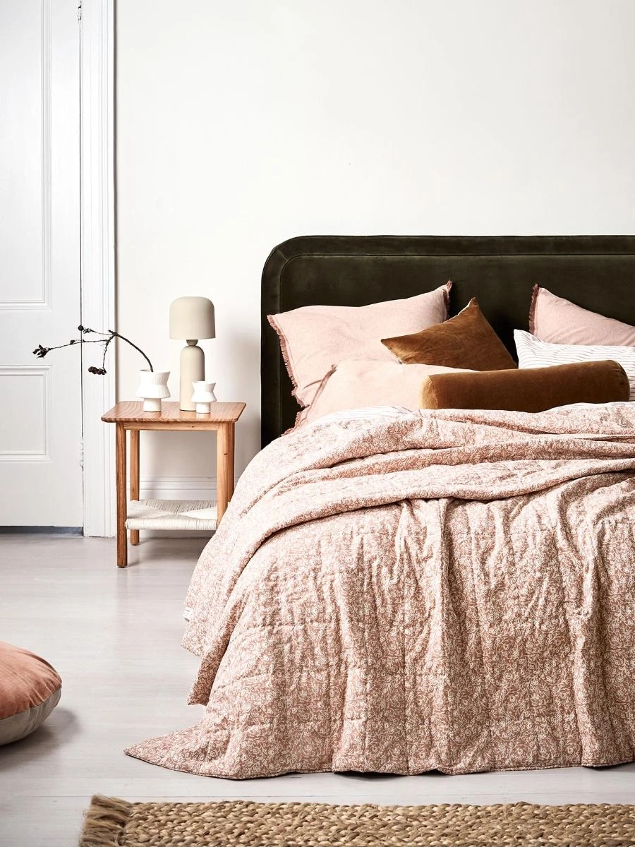 It is said that Varanasi is older than history, older than tradition, older even than legend. A centre for pilgrimage and spirituality, the ‘great city on the Ganges’ has long been known for its exquisite floral prints, or ‘Buti’, a tradition that stretches back centuries. Our new Varanasi Coverlets and Pillowcases draw inspiration from that style, with a palette that’s 100% Aura Home. Available in contemporary Hazelnut, Mist & Feather, and featuring hand-ties on all pillowcases, Varanasi is the perfect accompaniment to your bedroom setting.