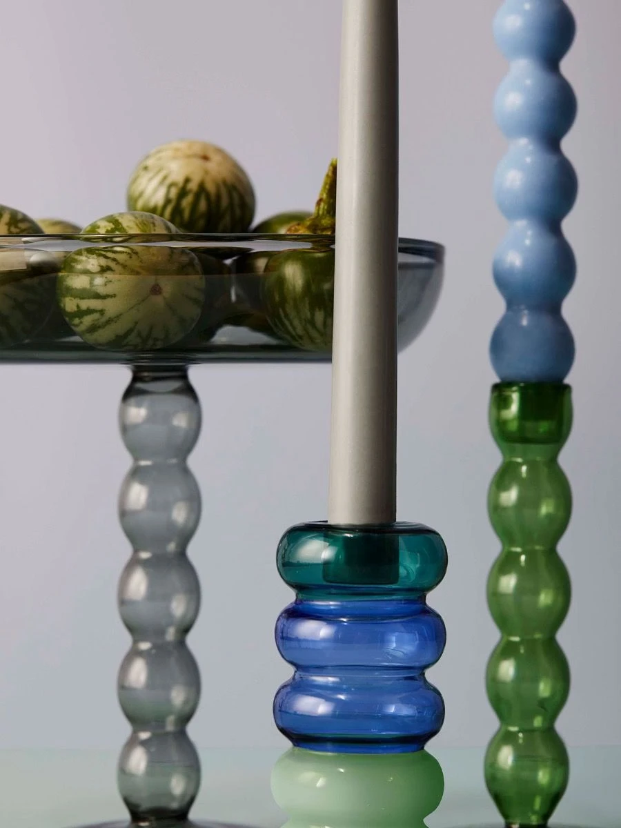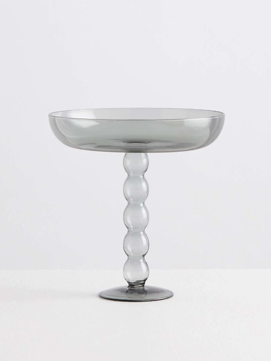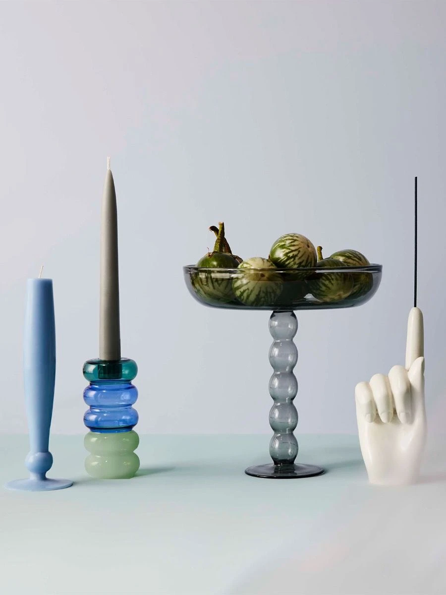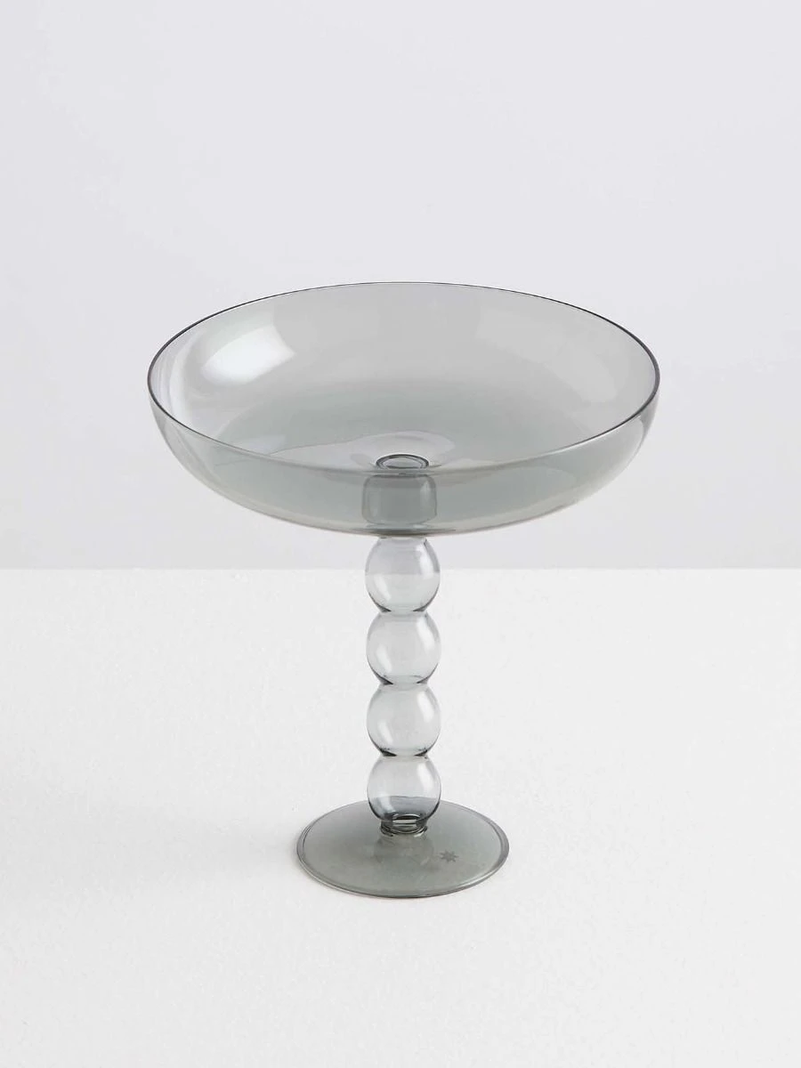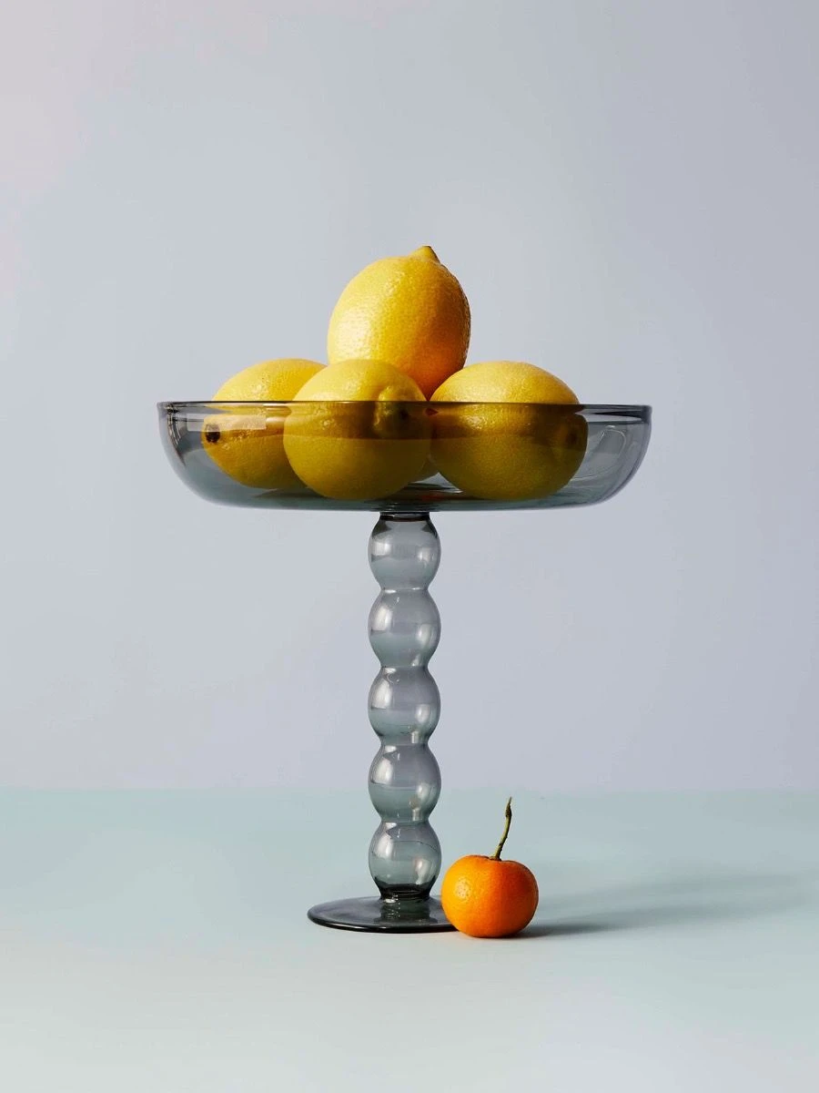 Volute Platter in Smoke – the silent waiter: it will display fruits, macarons, canapés or jewellery at all time in an elegant and elevated manner. The dreamy volute base echoes Maison Balzacs matching candle sticks and colourful candleholders to create a big happy family! Made from 100% borosilicate glass. Size: 20cm top diameter, 8.5cm base diameter, 20.5cm high.